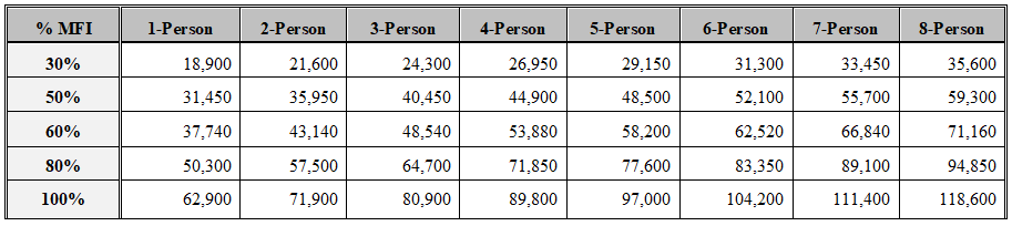 Affordable Housing Income Limits